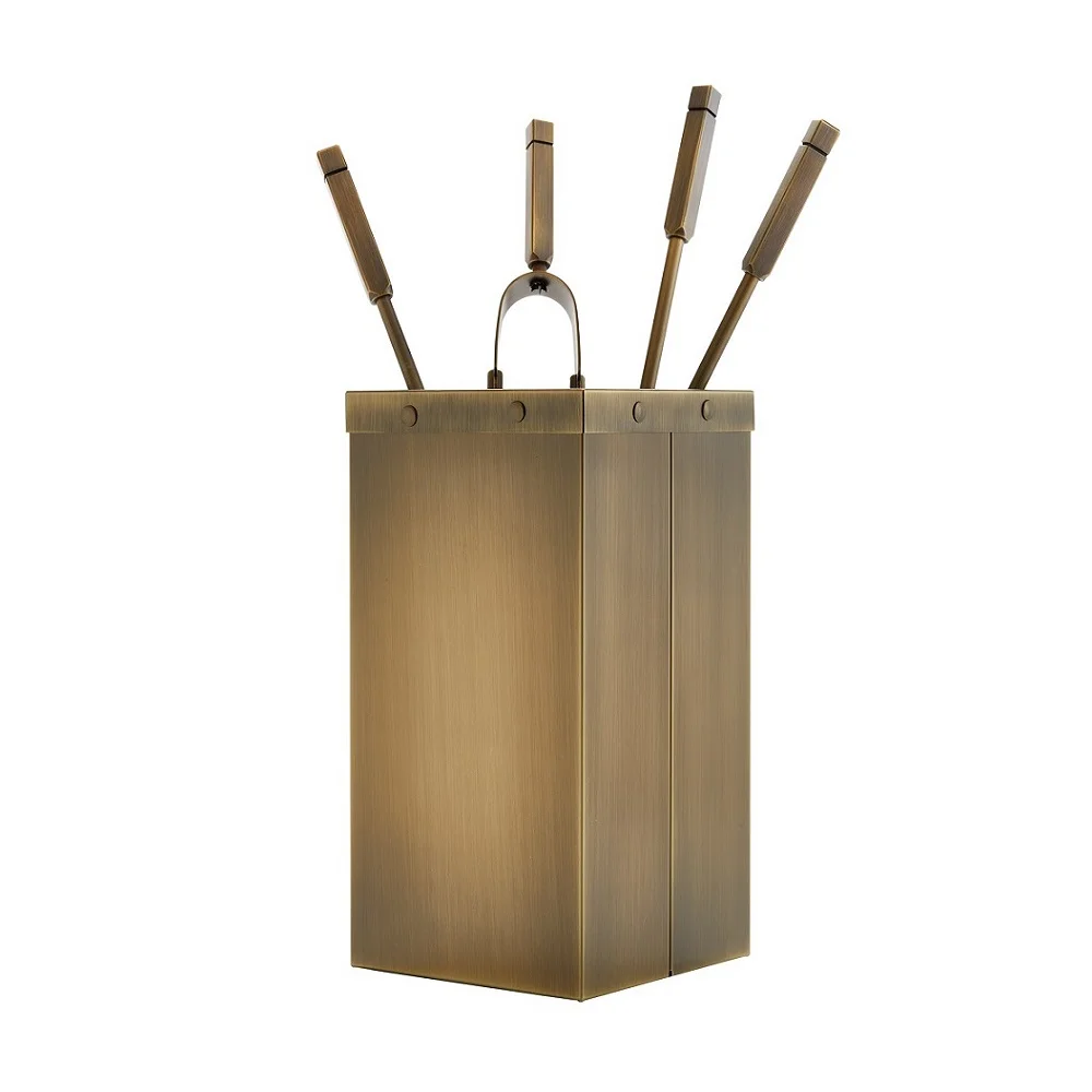 Σετ εργαλεία σε κουβά N 1215-K12 Μπρονζέ. Εκπληκτική πρωτότυπη τετράγωνη σειρά Κουβά Σετ με 4 Εργαλεία για μια μοναδική διακόσμηση του τζακιού σας. Ο Κουβάς είναι ιδιαιτέρως πρακτικός και εύχρηστος καθώς μαζεύει όλες τις στάχτες.