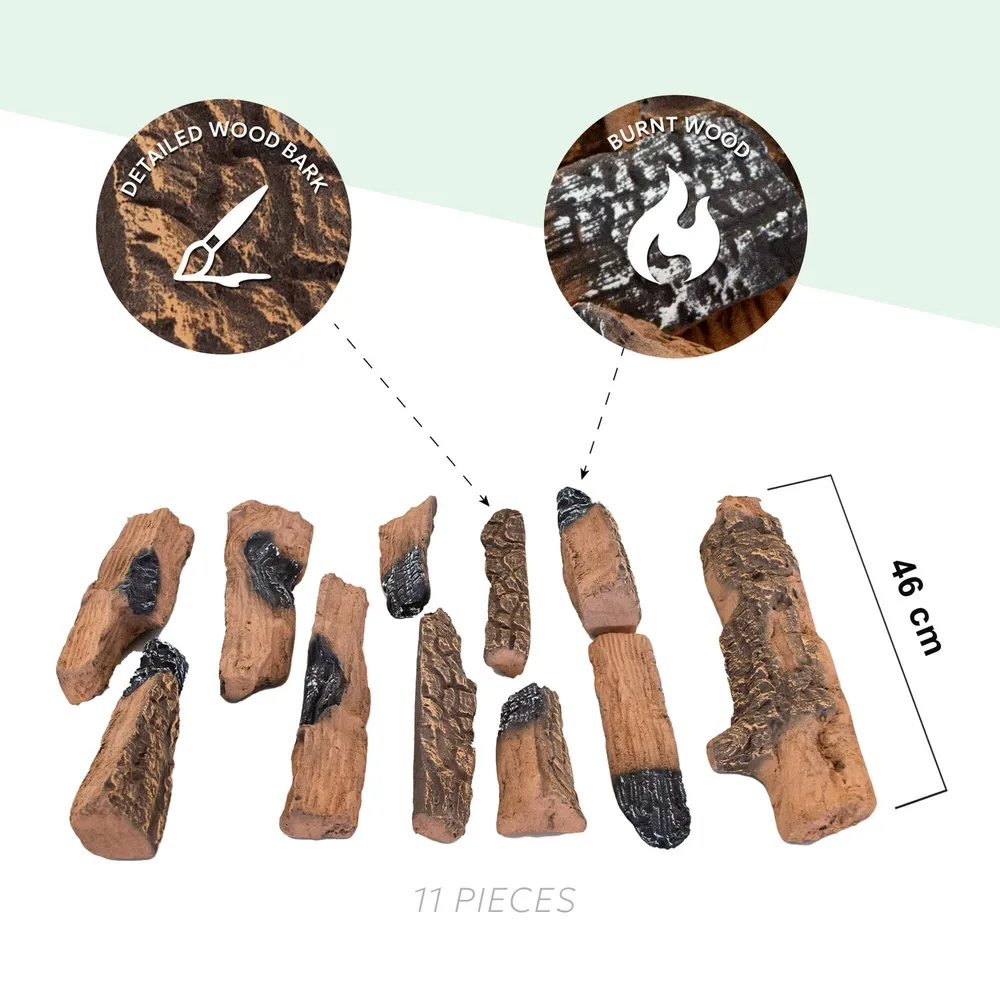 Σετ Κεραμικών Ξύλων Δάσους (11 Τεμάχια) Xaralyn υψηλής αντοχής, με ρεαλιστική όψη καμένων ξύλων. Ιδανικά για κάθε ηλεκτρικό τζάκι.