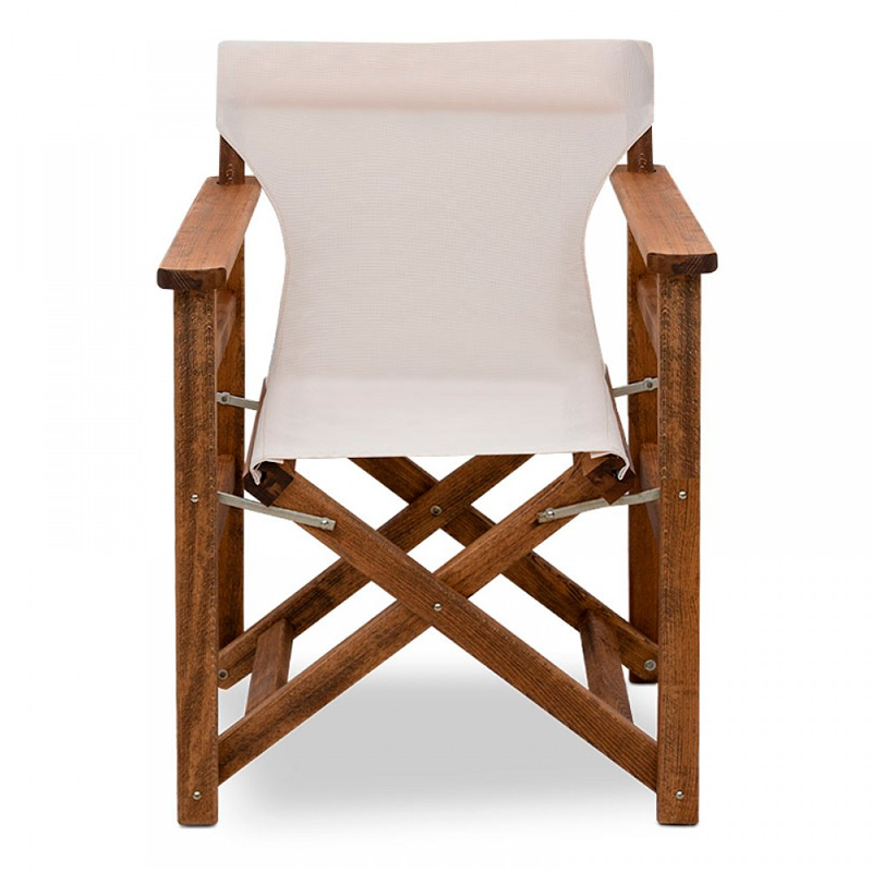 Σετ τραπεζαρία κήπου Queen Megapap ξύλινη τραπέζι 80×60εκ. – πολυθρόνα σκηνοθέτη καρυδί – εκρού πανί