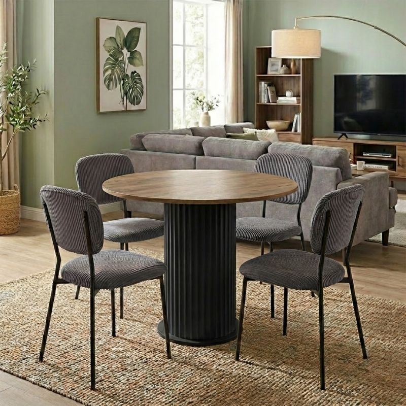 Η τραπεζαρία Bohema – Kevin θα φέρει μία αίσθηση εκλεπτυσμένης κομψότητας στον χώρο σας. Το πλούσιο κοτλέ ύφασμα της καρέκλας χαρίζει ζεστασιά και υφή, ενώ τα μεταλλικά πόδια προσδίδουν μοντέρνο χαρακτήρα και σταθερότητα. Ιδανική επιλογή τόσο για το σπίτι όσο και για επαγγελματικούς χώρους που θέλουν να επικοινωνήσουν ποιότητα και design σε κάθε λεπτομέρεια.