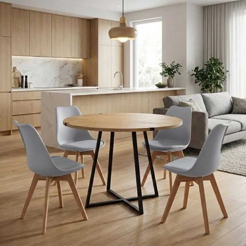 Σετ τραπεζαρία 5τμχ Rubes – Viva Megapap χρώμα φυσικό οξιάς – γκρι Ø100x78εκ.