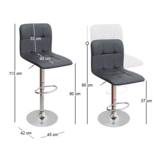 Σκαμπό μπαρ Carmelo Megapap με ρυθμιζόμενο ύψος από τεχνόδερμα χρώμα μαύρο – βάση χρωμίου 45x42x90/113εκ.