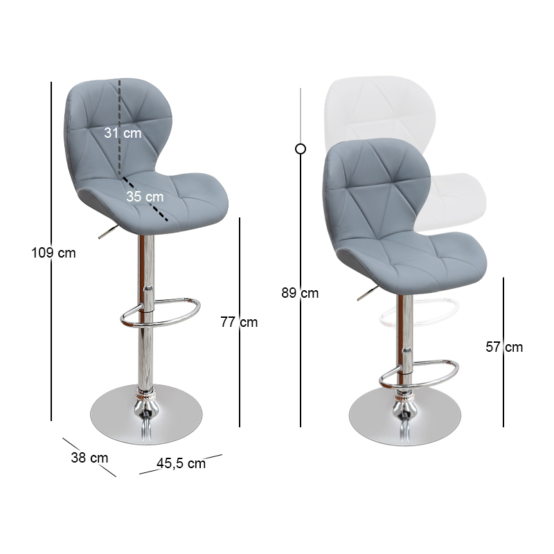 Σκαμπό μπαρ Dolores Megapap με ρυθμιζόμενο ύψος από τεχνόδερμα χρώμα γκρι – βάση χρωμίου 45,5x38x89/109εκ.
