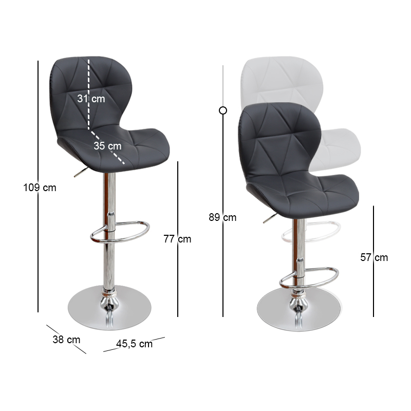 Σκαμπό μπαρ Dolores Megapap με ρυθμιζόμενο ύψος από τεχνόδερμα χρώμα μαύρο – βάση χρωμίου 45,5x38x89/109εκ.