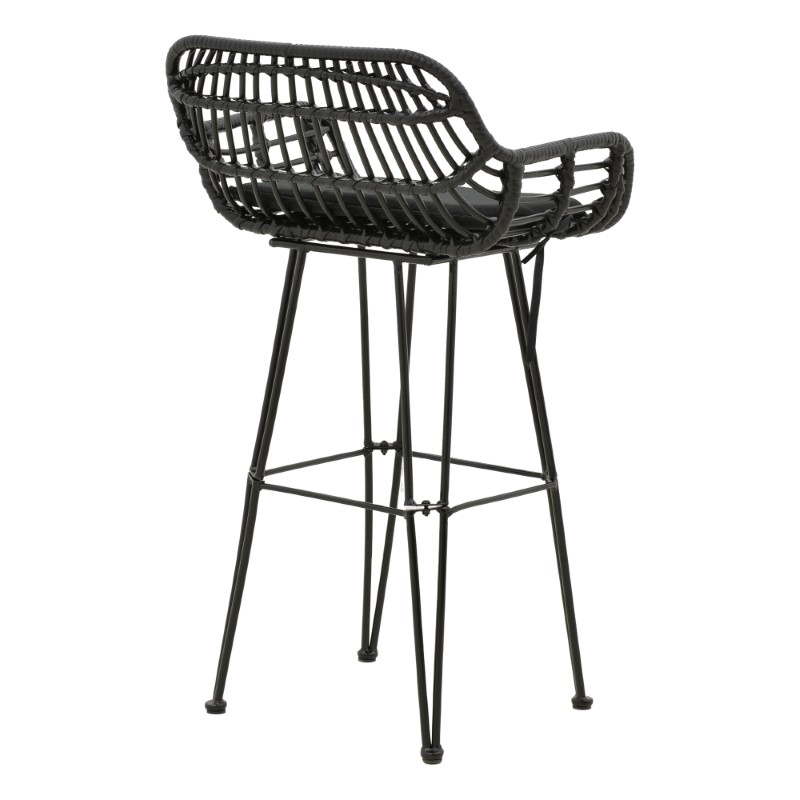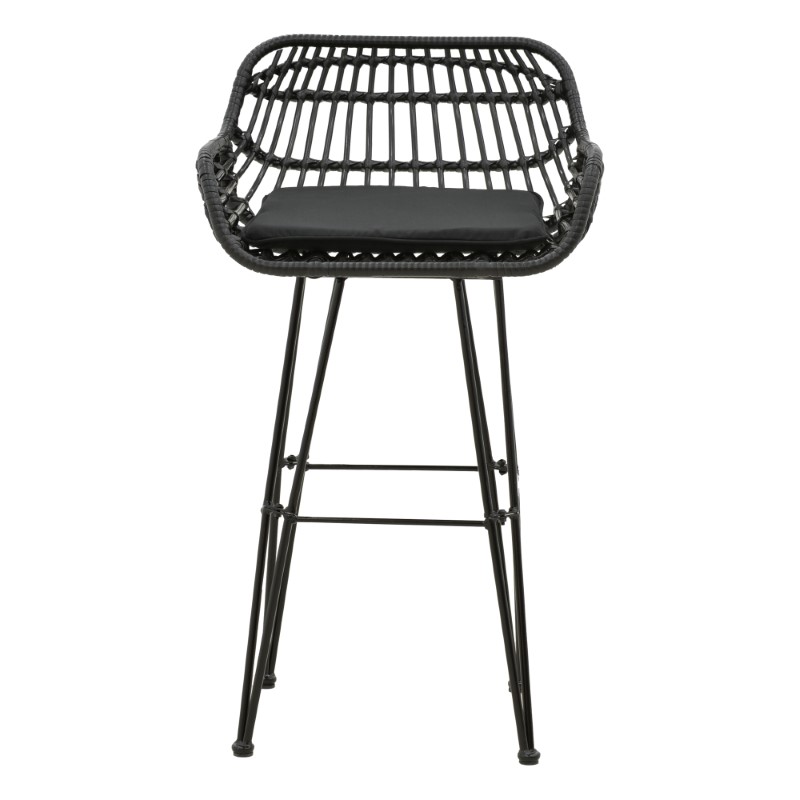 Σκαμπό μπαρ κήπου Naoki pakoworld με μαξιλάρι pe μαύρο-μέταλλο μαύρο πόδι 52x50x90εκ