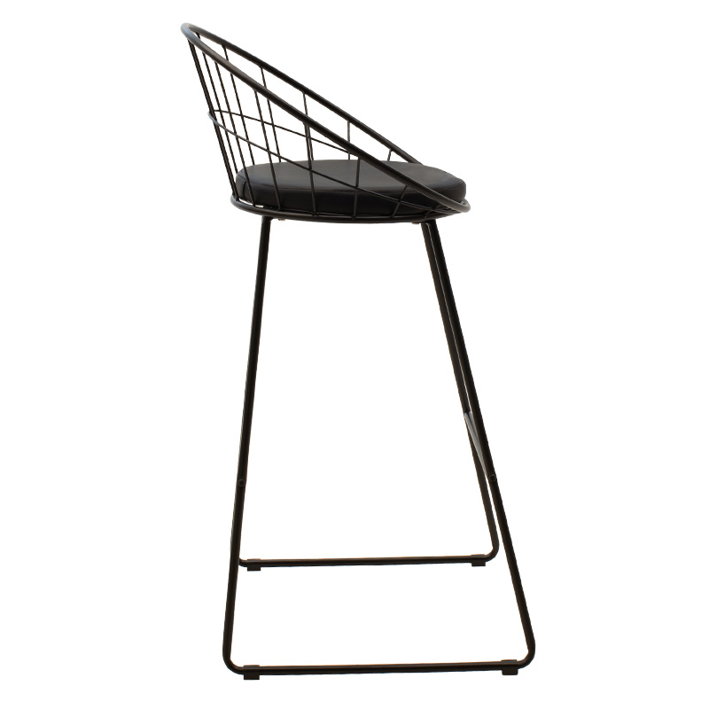 Σκαμπό μπαρ Seth pakoworld μεταλλικό μαύρο με μαξιλάρι PVC μαύρο