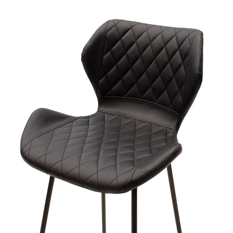 Σκαμπό μπαρ Theo pakoworld μεταλλικό μαύρο με PU μαύρο