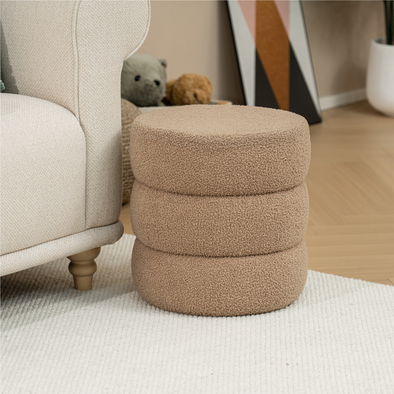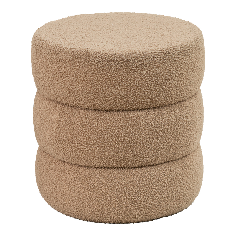 Σκαμπό-πουφ Kioto pakoworld μπουκλέ καφέ Φ40×40εκ