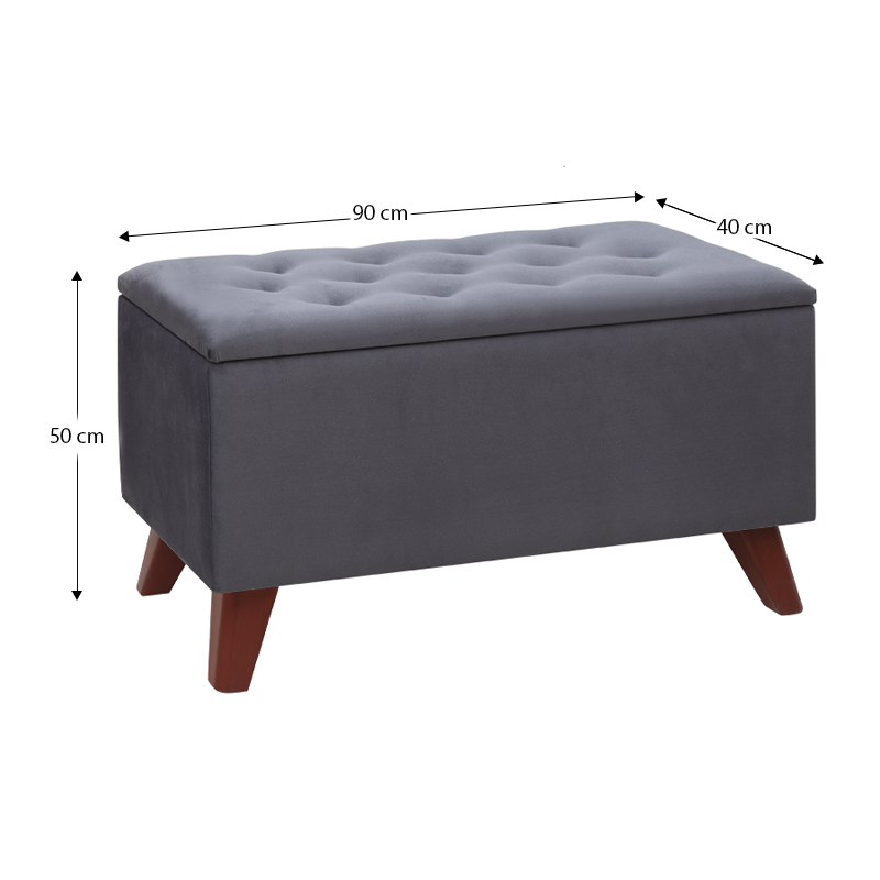 Σκαμπώ – Ταμπουρέ Lotus Megapap βελούδινο χρώμα ανθρακί 90x40x50εκ.