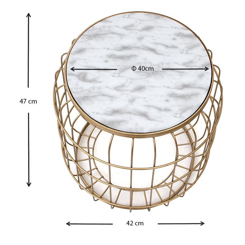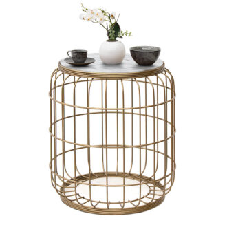 Σκαμπώ – Τραπεζάκι βοηθητικό Muller Megapap μεταλλικό – Mdf χρώμα χρυσό – λευκό 35x35x47εκ.