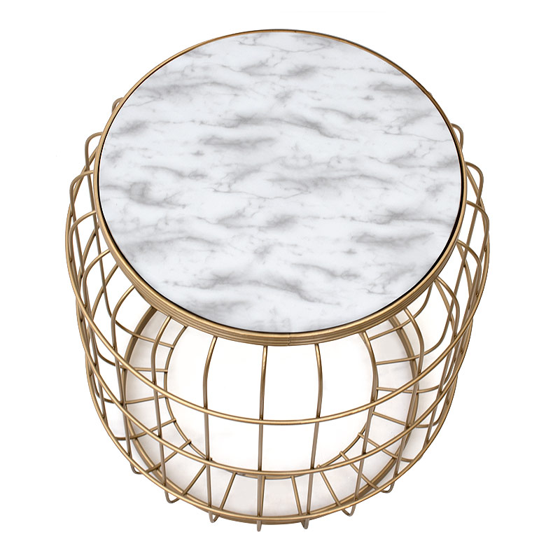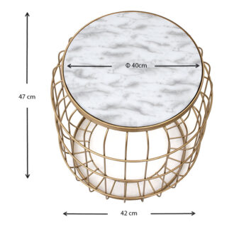 Σκαμπώ – τραπεζάκι βοηθητικό Muller Megapap μεταλλικό – Mdf χρώμα χρυσό – λευκό 35x35x47εκ.