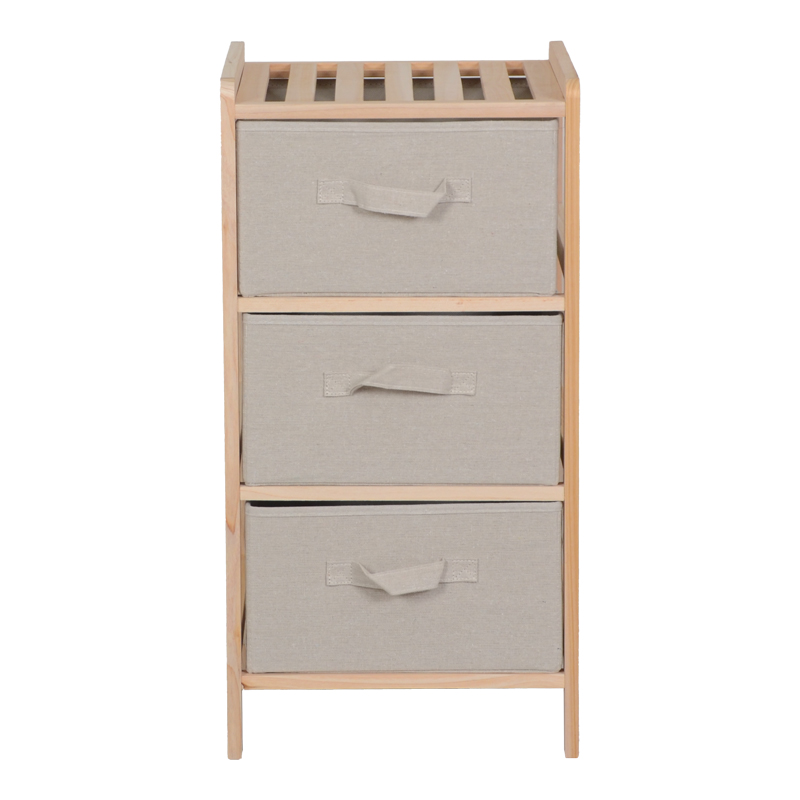 Οργανώστε τον χώρο σας με στυλ και ευκολία χάρη σε αυτή την compact και ευέλικτη συρταριέρα. Με σκελετό από ανθεκτικό ξύλο και τρία υφασμάτινα συρτάρια, αποτελεί την ιδανική λύση για να τακτοποιήσετε τα προσωπικά σας αντικείμενα με έναν καλαίσθητο τρόπο.