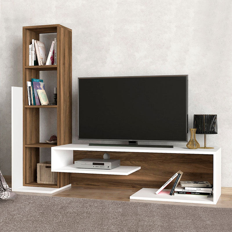 Σύνθεση τηλεόρασης Bend Megapap χρώμα λευκό – καρυδί 153,6x39x131εκ.