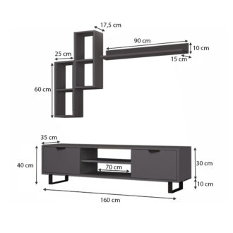 Σύνθεση τηλεόρασης Lonsa Megapap από μελαμίνη χρώμα ανθρακί 160x35x40εκ.