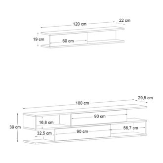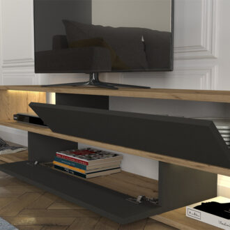 Σύνθεση τηλεόρασης Manet Megapap με LED χρώμα sepet oak – ανθρακί 180×29,5×39εκ.