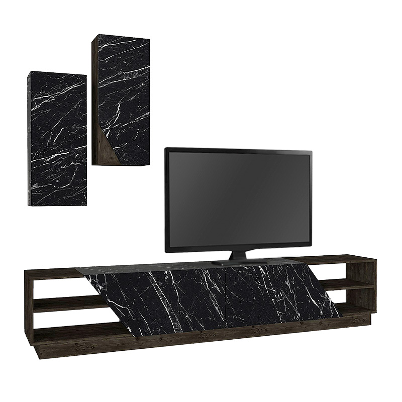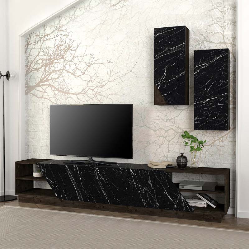 Σύνθεση τηλεόρασης River Megapap από μελαμίνη χρώμα μαύρο rebab – μαύρο εφέ μαρμάρου 240×36,6×47εκ.