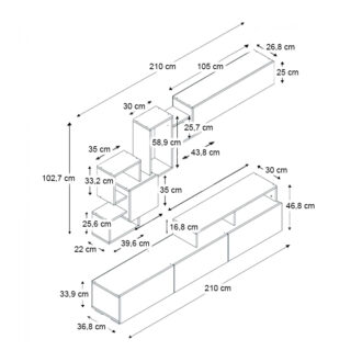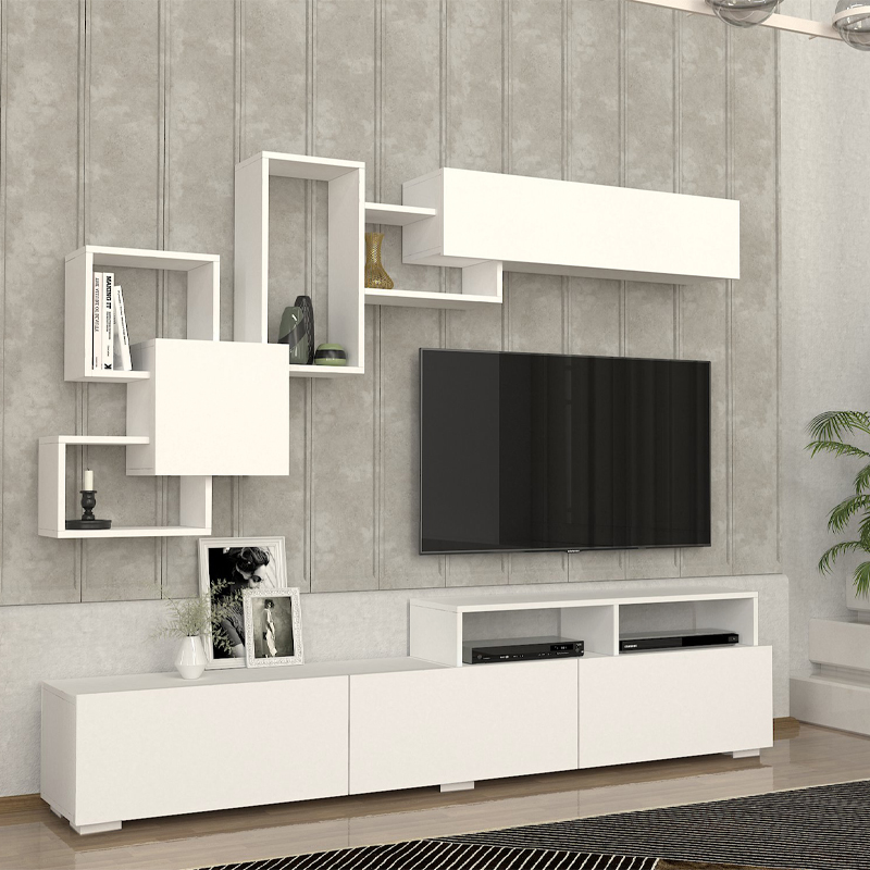 Σύνθεση τηλεόρασης Stamatia Megapap από μελαμίνη χρώμα λευκό 210×36,8×46,8εκ.
