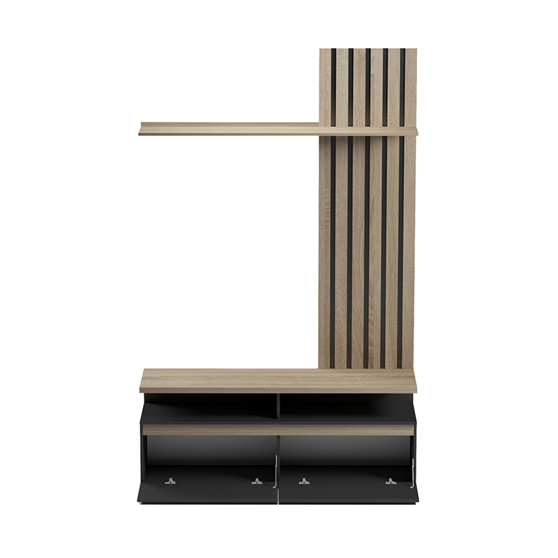 Διαθέτει ευρύχωρη επιφάνεια για την τηλεόρασή σας, ενώ τα ράφια προσφέρουν ιδανικό χώρο για διακοσμητικά, βιβλία ή συσκευές. Τα πρακτικά συρτάρια στο κάτω μέρος παρέχουν κρυφό αποθηκευτικό χώρο για να διατηρείτε τον χώρο σας τακτοποιημένο.