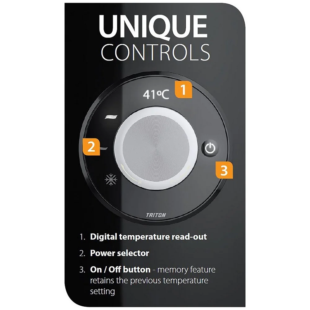 Ταχυθερμοσίφωνας Ντουζ TRITON Amore – White – Με οθόνη θερμοκρασίας 7.8kw – 01062. Ένδειξη θερμοκρασίας στην οθόνη σε βαθμούς Κελσίου.