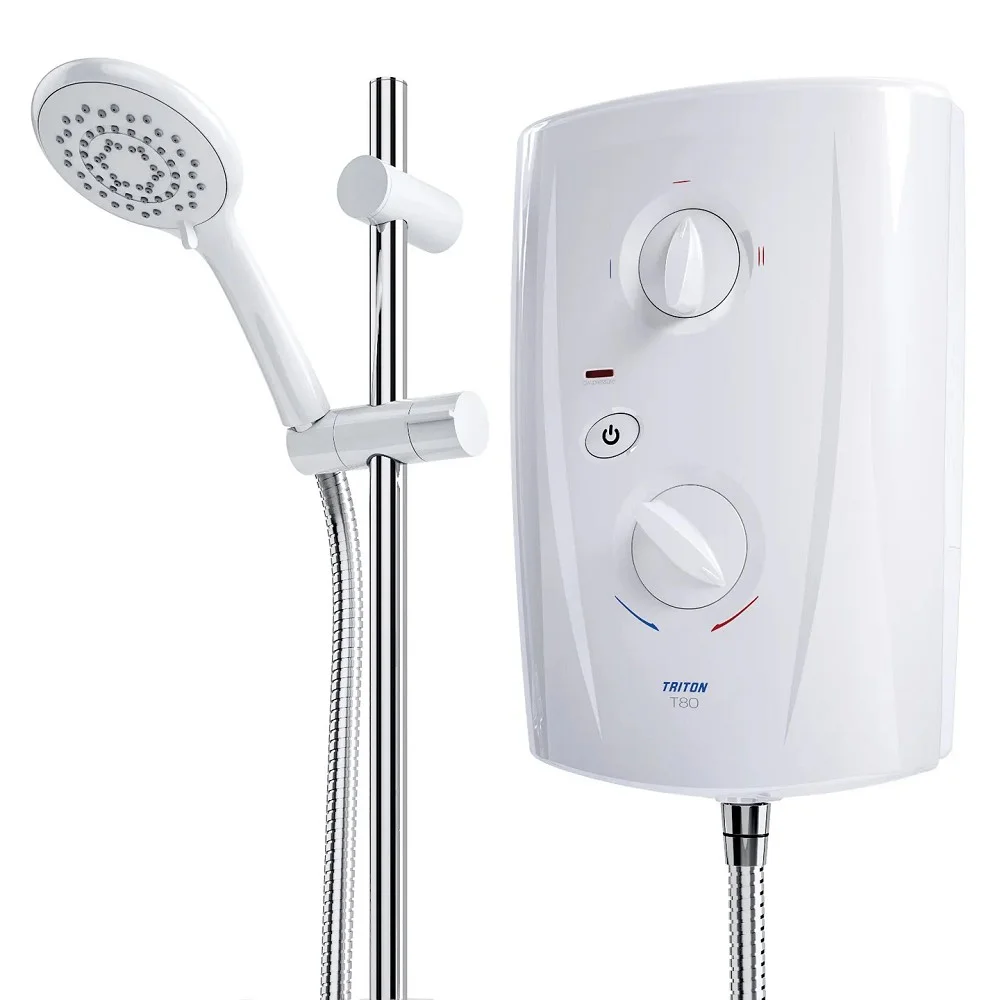 Ταχυθερμοσίφωνας Ντουζ TRITON T80 Pro Fit 7.8kw – 01042. Ντουζ ημι-αυτοκαθαριζόμενο πολλαπλών ροών. Ράβδος με extra μήκος σύνολο 67 εκατοστών, από αλουμίνιο με στήριγμα ντους ρυθμιζόμενο σε όποιο ύψος θέλετε.