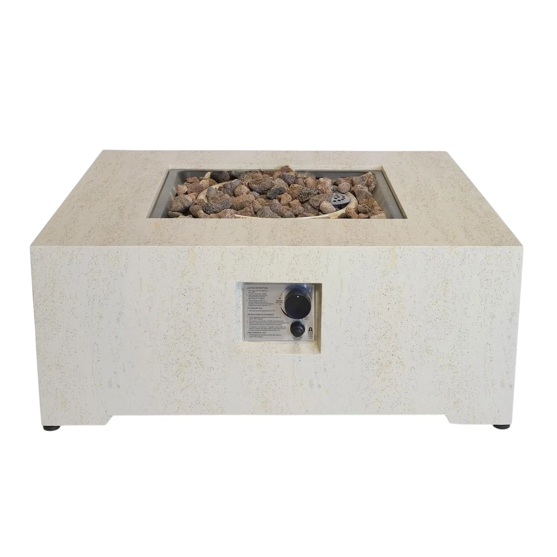 Τζάκι υγραερίου εξωτερικού χώρου Estate Square 88 (Travertine). Άναψε το εύκολα με την ηλεκτρονική ανάφλεξη και το θερμοστοιχείο, Πιστοποιημένο καθώς και ασφαλές προϊόν. Ευχάριστη και επιπλέον φιλική προς το χρήστη φωτιά χωρίς καπνό ή σπίθες.