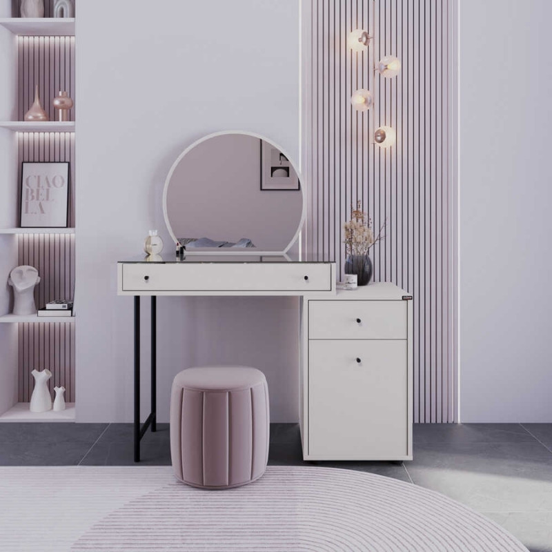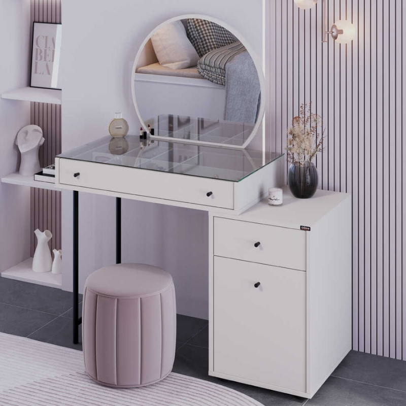 Τουαλέτα με καθρέπτη Dior Megapap χρώμα λευκό του πάγου 108x45x130εκ.