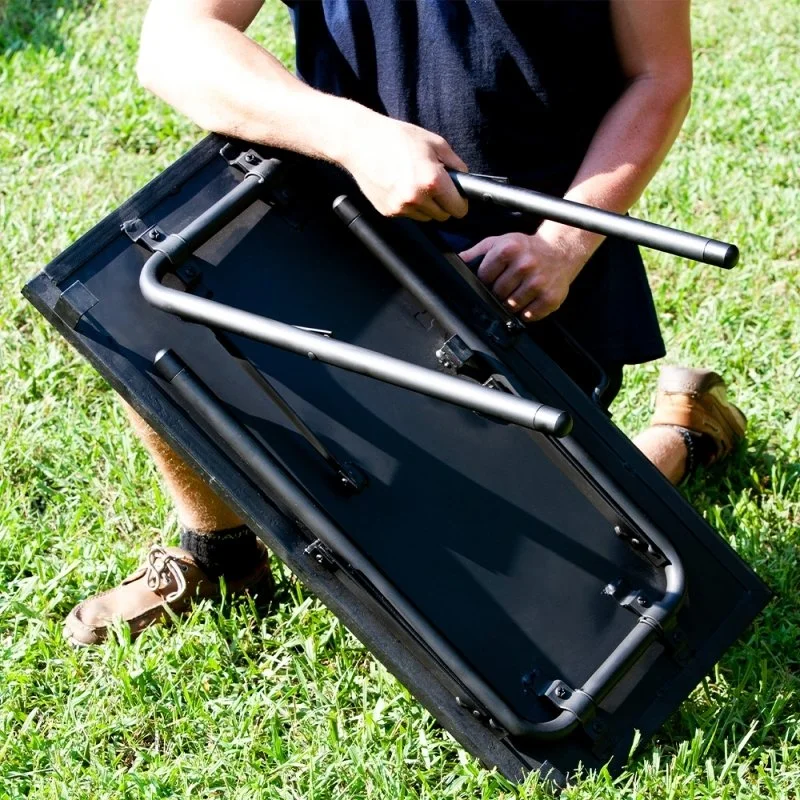 Η ανθεκτική κατασκευή αυτού του τραπεζιού από χάλυβα και το μαύρο φινίρισμα υψηλής θερμοκρασίας σάς βοηθά να μαγειρεύετε έξω σε οποιοδήποτε περιβάλλον.