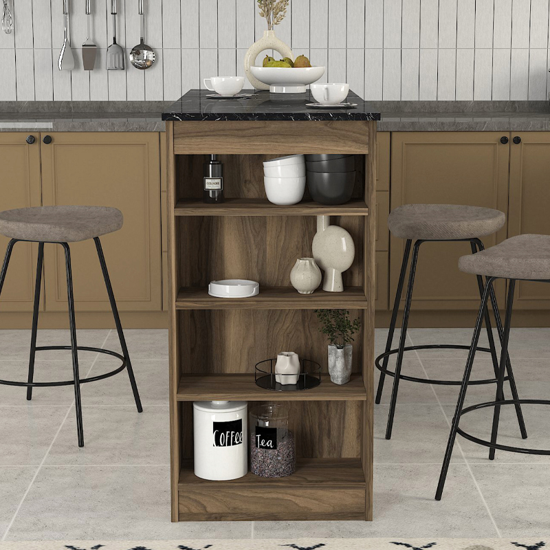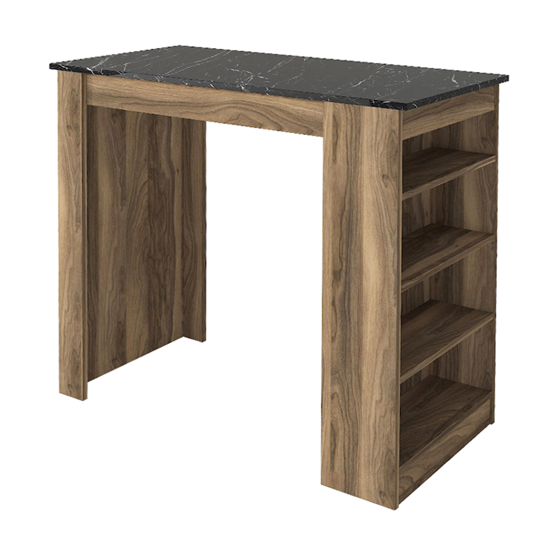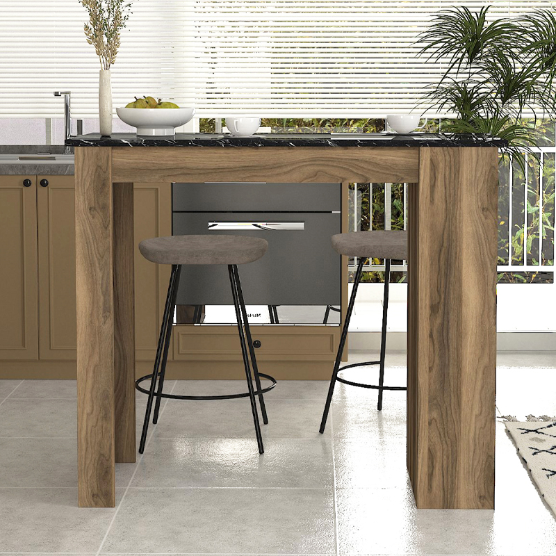 Τραπέζι μπαρ Monaco Megapap από μελαμίνη χρώμα καρυδί – μαύρο εφέ μαρμάρου 120×51,6×101,8εκ.