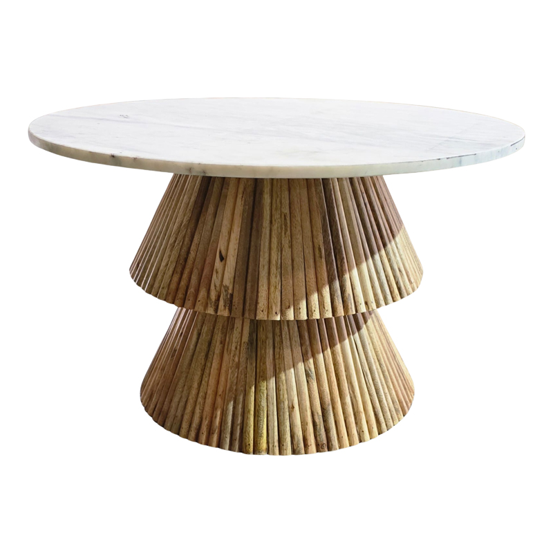 Τραπέζι σαλονιού Havai pakoworld μασίφ ξύλο mango σε φυσική απόχρωση κ λευκή επιφάνεια μαρμάρου Φ80×45εκ