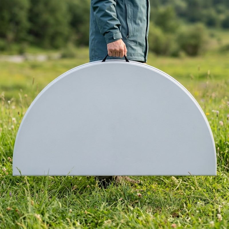 Τραπέζι catering – συνεδρίου Capri Megapap πτυσσόμενο – βαλίτσα στρογγυλό χρώμα λευκό του πάγου Ø152×74εκ.