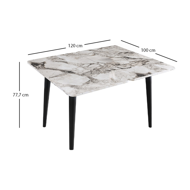 Τραπέζι Dolunay Megapap επεκτεινόμενο χρώμα λευκό εφέ μαρμάρου – μαύρο 100×60(120×100)x79,5εκ.