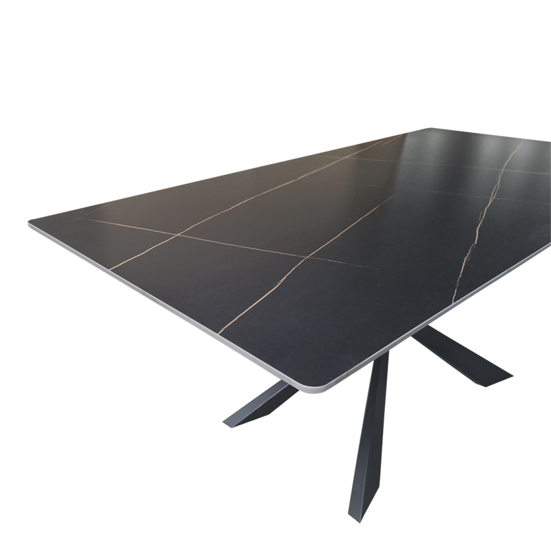 Αναζητάτε ένα statement έπιπλο που θα αναδείξει την τραπεζαρία ή τον επαγγελματικό σας χώρο; Αυτό το ορθογώνιο τραπέζι συνδυάζει άψογα τη φυσική ομορφιά της επιφάνειας με όψη μαρμάρου και τον τολμηρό, σύγχρονο σχεδιασμό της μαύρης μεταλλικής βάσης. Η μοναδική διασταυρούμενη βάση όχι μόνο προσφέρει εξαιρετική σταθερότητα, αλλά αποτελεί και ένα εντυπωσιακό αρχιτεκτονικό στοιχείο.