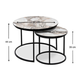 Τραπεζάκια σαλονιού Gary Megapap Mdf – μεταλλικό χρώμα μπεζ εφέ μαρμάρου 65x65x44εκ.