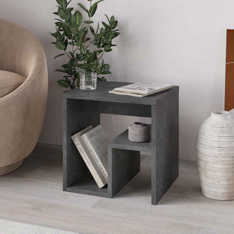Τραπεζάκι βοηθητικό – Κομοδίνο Bon Megapap χρώμα γκρι ρετρό 40x35x40εκ.