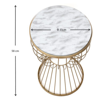 Βοηθητικό τραπεζάκι Aldora Megapap μεταλλικό – Mdf χρώμα χρυσό – λευκό εφέ μαρμάρου 35x35x58εκ.