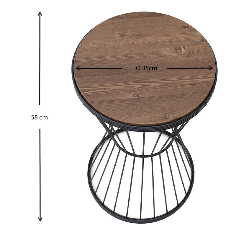 Τραπεζάκι βοηθητικό Hoffman Megapap μεταλλικό – Mdf χρώμα μαύρο – καρυδί 35x35x58εκ.