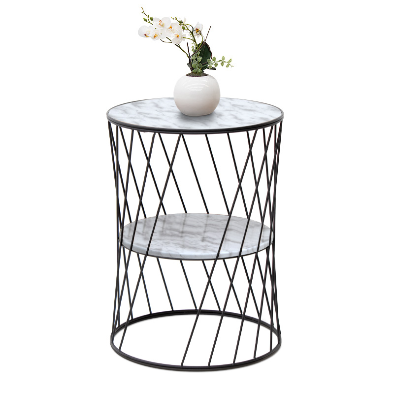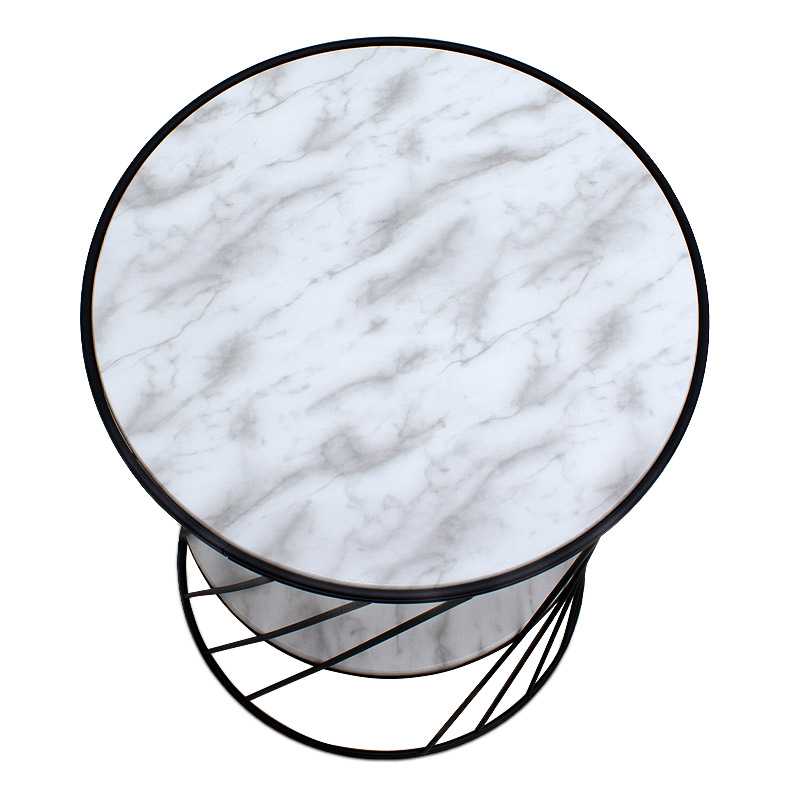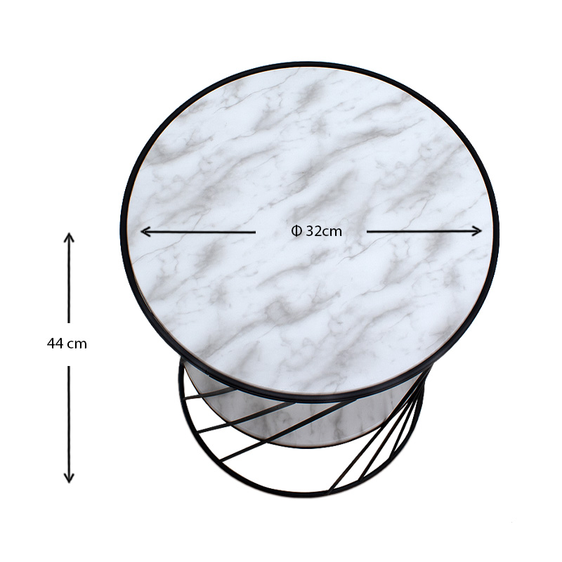 Βοηθητικό τραπεζάκι Jaspin Megapap μεταλλικό – Mdf χρώμα μαύρο-λευκό εφέ μαρμάρου 32x32x44εκ.