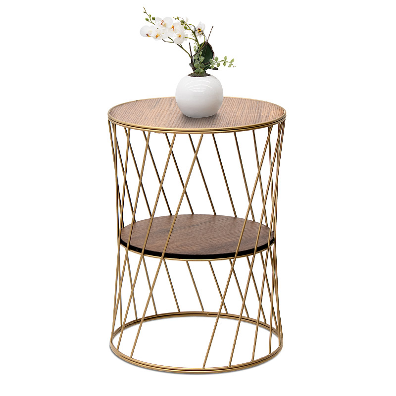 Βοηθητικό τραπεζάκι Jaspin Megapap μεταλλικό – Mdf χρώμα χρυσό – καρυδί 32x32x44εκ.
