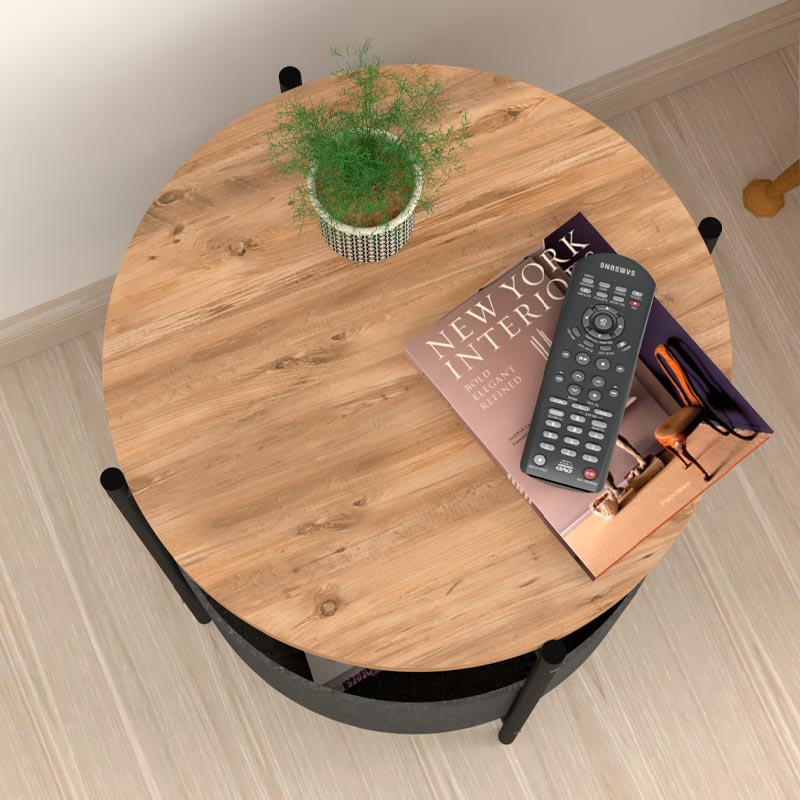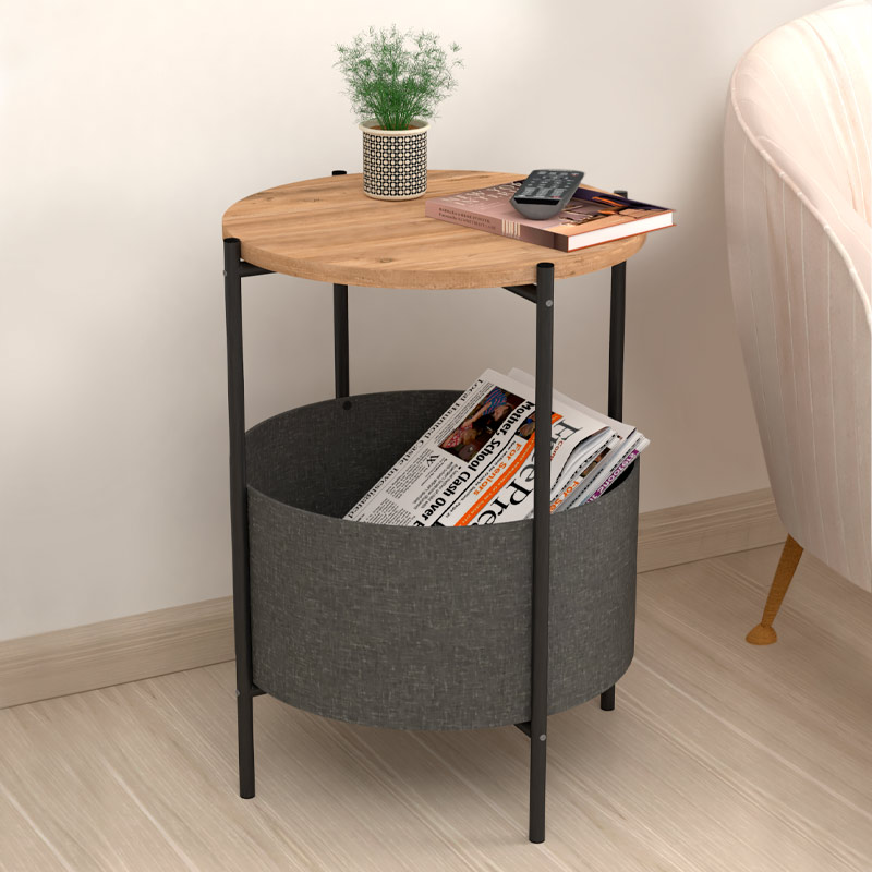 Βοηθητικό τραπεζάκι Kalid Megapap μελαμίνης – υφασμάτινο χρώμα pine oak – γκρι 43x43x60εκ.