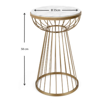 Βοηθητικό τραπεζάκι Mantare Megapap μεταλλικό – Mdf χρώμα χρυσό – λευκό εφέ μαρμάρου 35x35x58εκ.