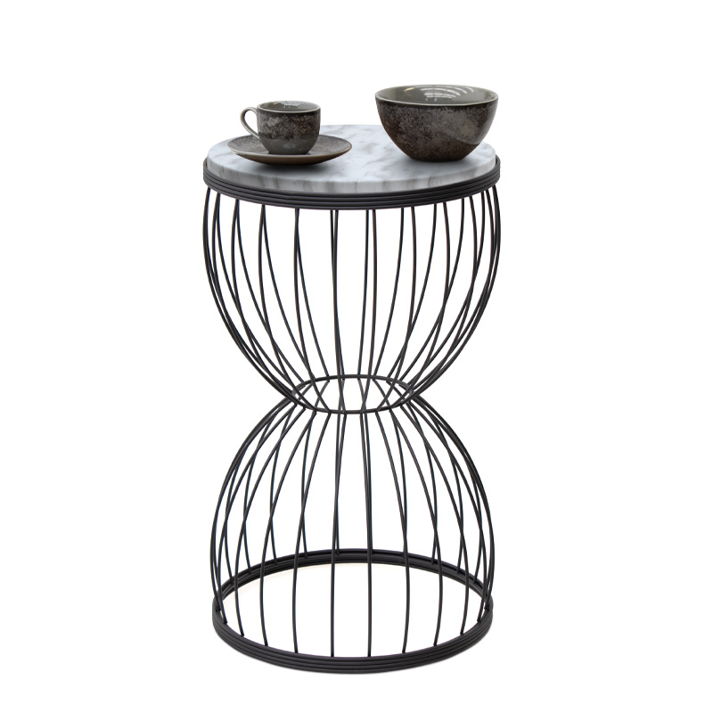 Βοηθητικό τραπεζάκι Pino Megapap μεταλλικό – Mdf χρώμα μαύρο – λευκό εφέ μαρμάρου 35x35x58εκ.