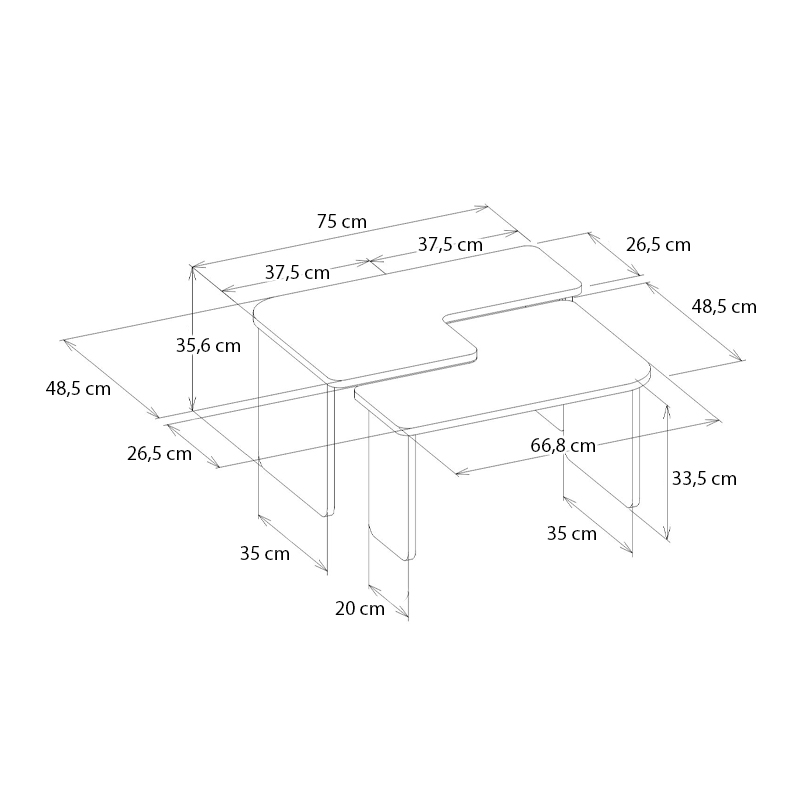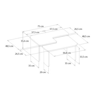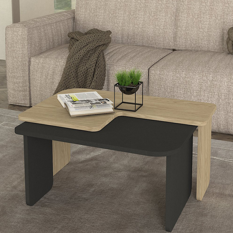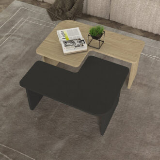 Τραπεζάκι σαλονιού σετ 2τμχ Lava Megapap χρώμα rota oak – ανθρακί 75×48,5×35,6εκ.