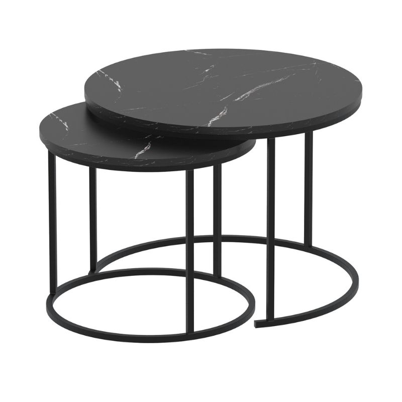 Τραπεζάκι σαλονιού σετ 2 τμχ Hilal Megapap χρώμα μαύρο εφέ μαρμάρου Ø66×49,5εκ.