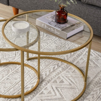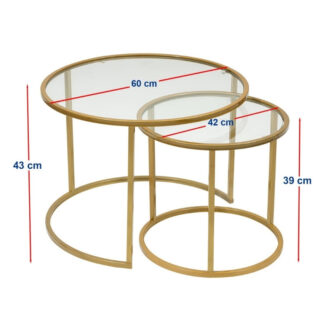 Τραπεζάκι σαλονιού σετ 2 τμχ Vetro Megapap μέταλλο – γυαλί χρώμα χρυσό Ø60×43εκ.