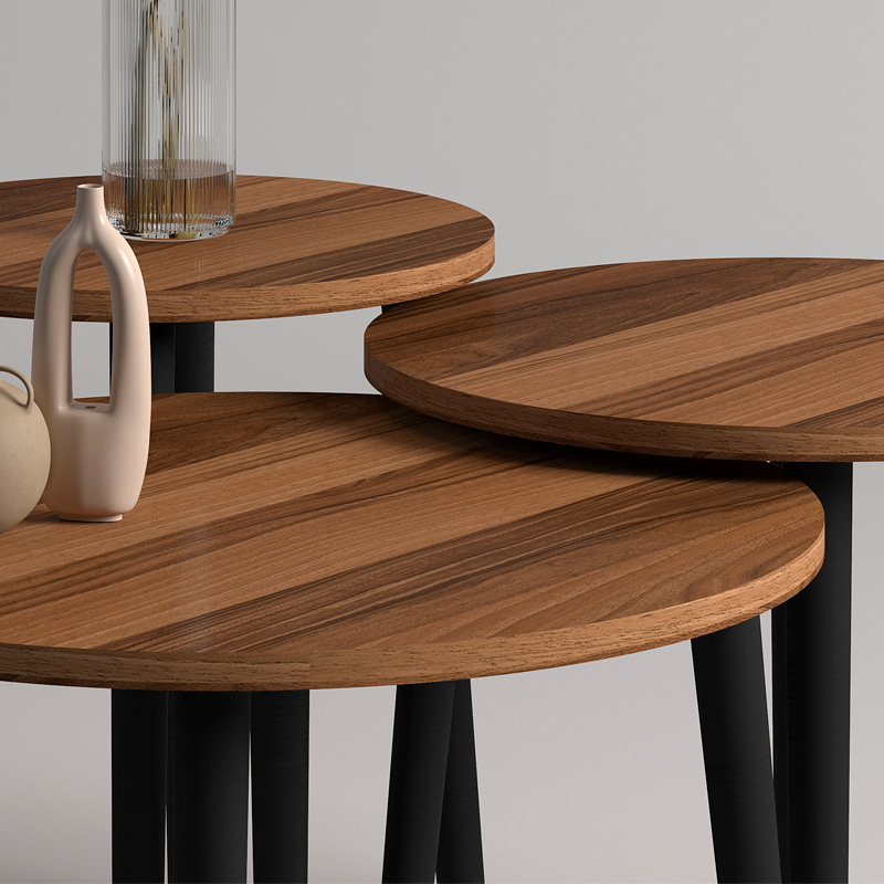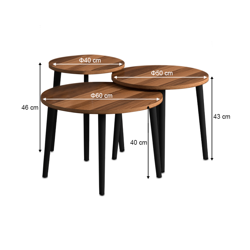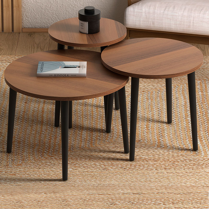 Τραπεζάκι σαλονιού σετ 3 τμχ Roma Megapap χρώμα καρυδί – γκρι – κρεμ Φ60×46εκ.