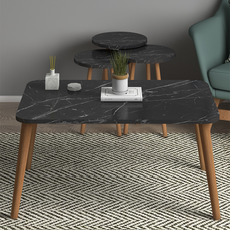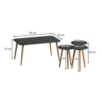 Τραπεζάκι σαλονιού σετ 4 τμχ Soul Megapap χρώμα μαύρο εφέ μαρμάρου 90x55x43εκ.