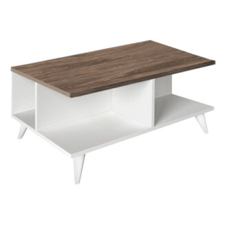Τραπεζάκι σαλονιού Sedra Megapap από μελαμίνη χρώμα λευκό – καρυδί 90x60x38,6εκ.