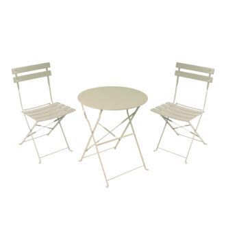 Τραπεζαρία Bistro pakoworld σετ 3τεμ μεταλλική αναδιπλούμενη σε μπεζ απόχρωση Φ60×71εκ