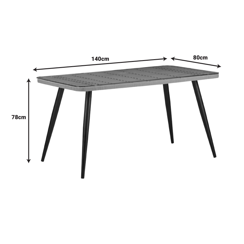 • Κυρίως επιφάνεια τραπεζιού από PE rattan. Το PE rattan είναι ένα είδος οικολογικού συνθετικού, ανακυκλώσιμο και με μεγαλύτερη ανθεκτικότητα σε σχέση με τα άλλα είδη.