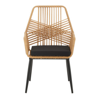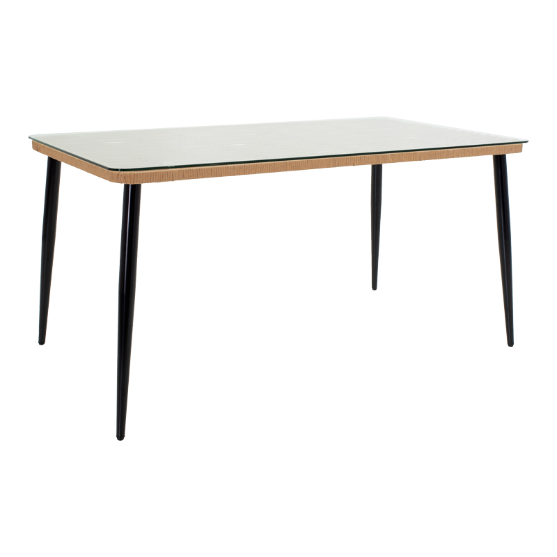 Τραπεζαρία Naoki-Tanish pakoworld σετ 7 τμχ rattan φυσικό-μαύρο μέταλλο-γυαλί 160x90x78εκ